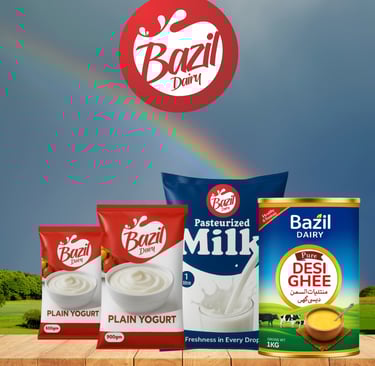 Bazil Dairy offers a range of pure and nourishing products crafted with care and authenticity. Our farm-fresh milk delivers natural richness and everyday nourishment you can trust. The yogurt is thick, smooth, and full of probiotic goodness, adding both taste and health to every meal. For traditional flavor and premium quality, our desi ghee is slowly crafted to bring a rich aroma and homemade taste to your kitchen. Together, these products reflect our commitment to freshness, purity, and true dairy excellence